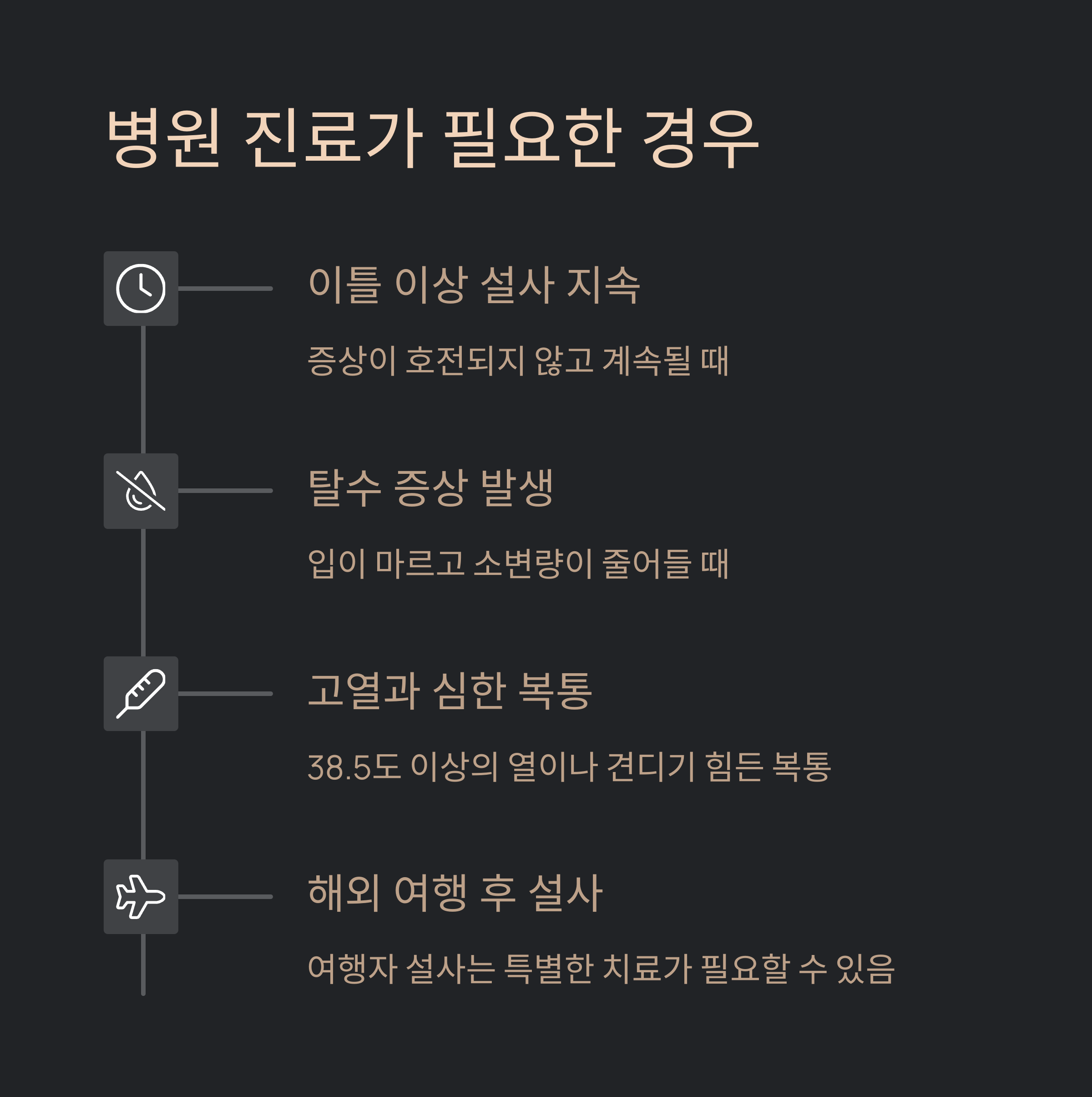 열이 나거나 탈수 증상이 있으면 즉시 병원에 가세요.